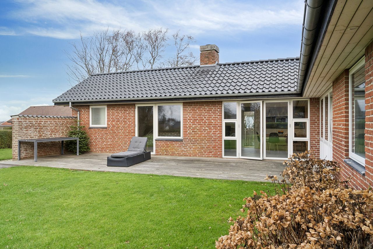 Der er masser af sol i haven, som vender optimalt mod sydvest. På den store græsplæne er der plads til leg, mens træterrassen inviterer til afslapning og sommerfrokoster i det fri.
