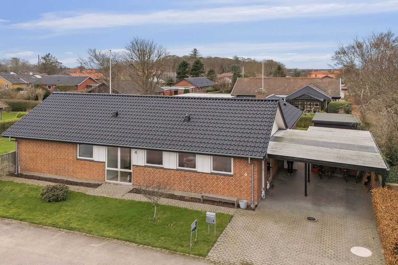 På en stille, lukket vej i Rindum kan I nu overtage denne villa, der er lige til at flytte ind i. Huset byder på en perfekt planløsning med separat forældre- og børneafdeling, og som endnu et plus er der virkelig tale om lave energiomkostninger. Boligpakken inkluderer tillige en dejlig have og egen carport samt et par praktiske skure.