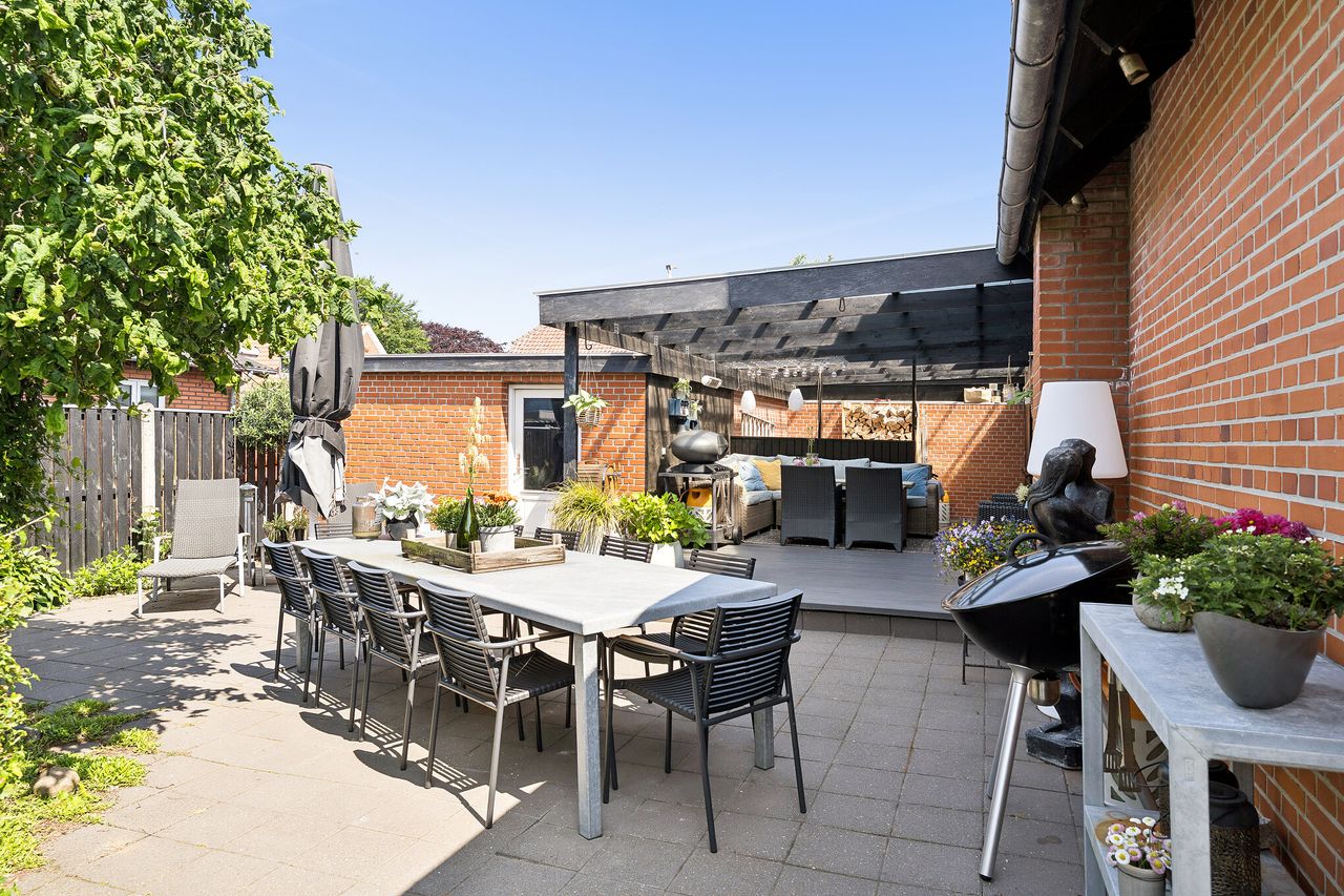 Haven er helt og aldeles unik. Ikke alene er her et væld af terrasser, hyggekroge og en helt fantastisk overdækket terrasse, hvor I kan nyde de gode solforhold, her er også en fornem beplantning med blandt andet veltrimmede buske, træer med brede kroner og flotte bede.